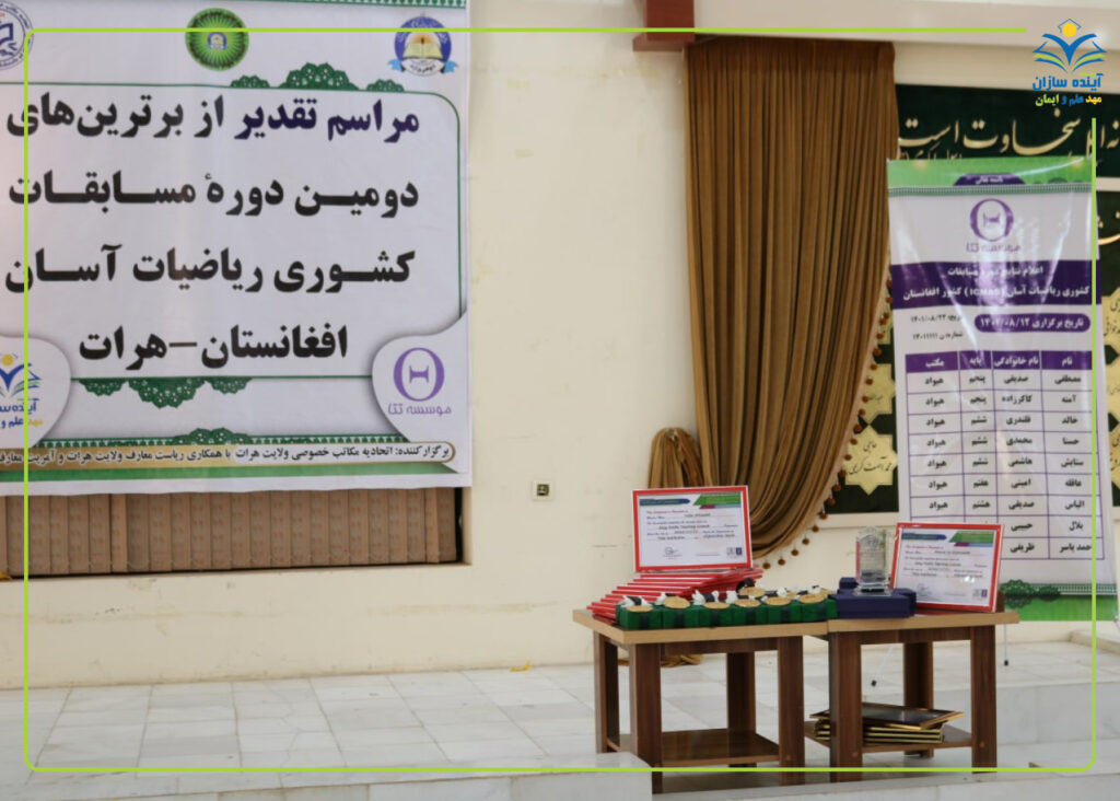 از برترینهای دومین دورهٔ مسابقات کشوری ریاضیات آسان در ولایت هرات تقدیر بهعمل آمد.