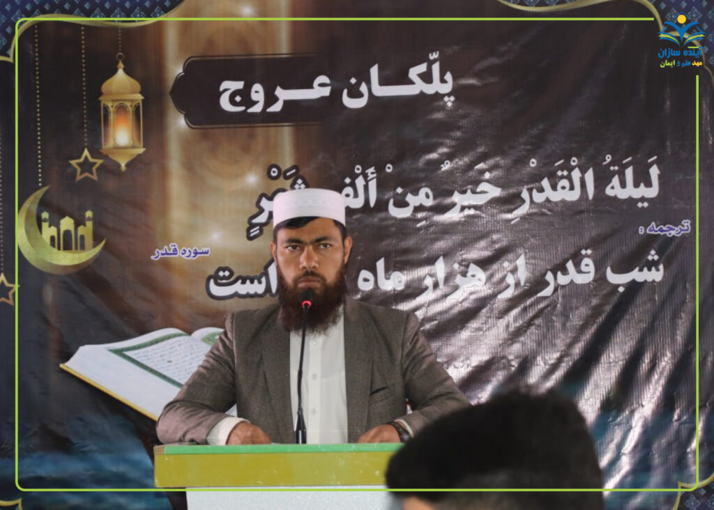 سپس محترم استاد حمیدالله حنیف، استاد دانشگاه در مورد درس های را که از رمضان آموختیم نکاتی ارزنده و مهم یادآوری نموده و حضار گرامی را بر دوام طاعت و بندگی بعد از رمضان نیز توصیه نمودند.